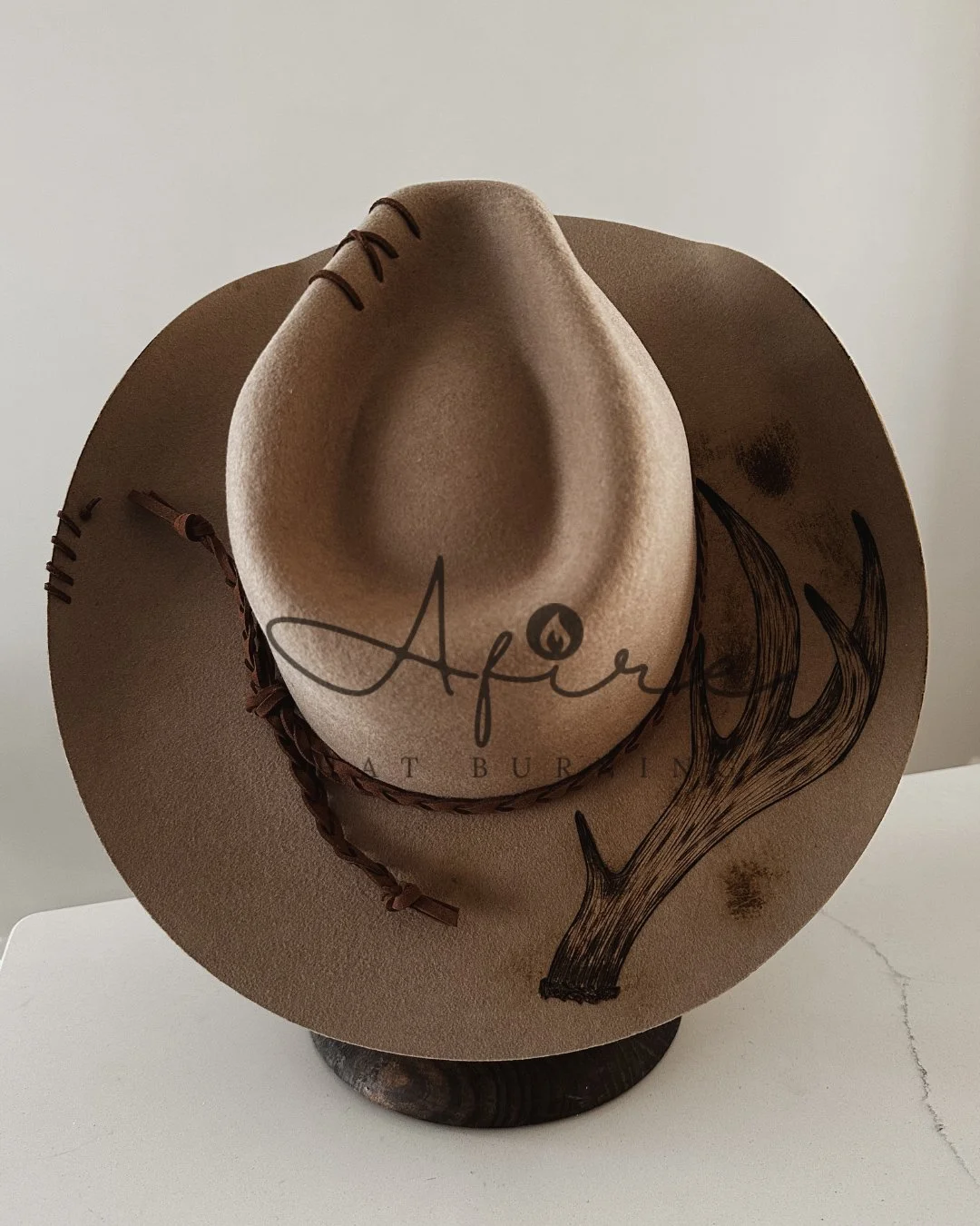 Embellished with stitching on the brim and crown, along with braided suede hat band